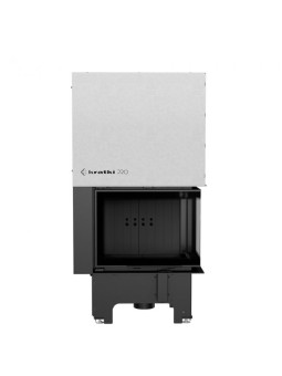 Moderní VN vložka verze up-dveře (gilotina - lift up systému) s bočním prosklením bez muntin kombajnů jedinečné estetiky a mimořádné výkonnostní vlastnosti. Kromě vizuálních rysů, zařízení zaručuje efektivní vytápění a ekologické spalování dřeva.